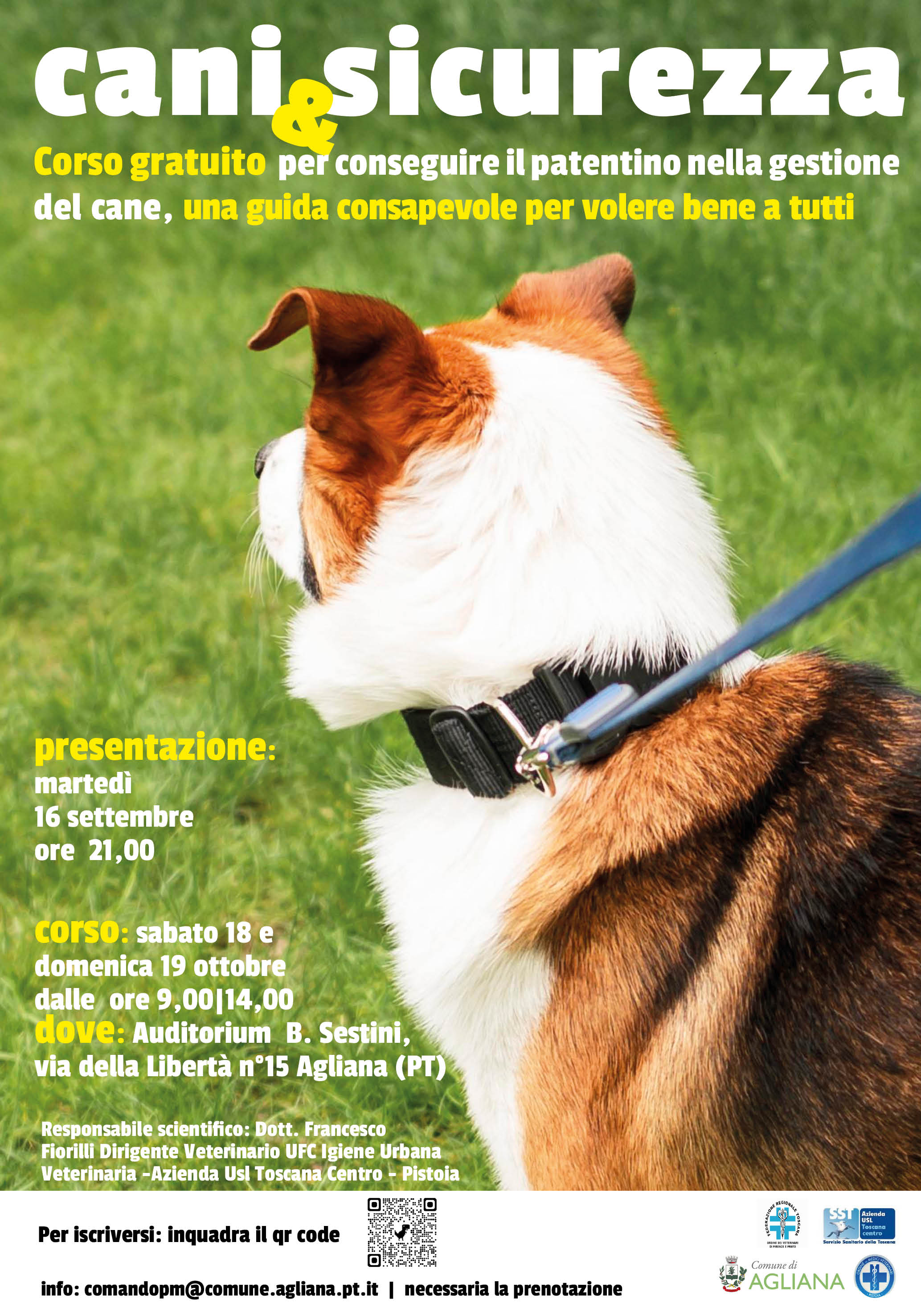 Cani & Sicurezza organizza un corso gratuito, tenuto da veterinari ed esperti, per conseguire il patentino di gestione del cane. Il 18 e 19 ottobre si affronteranno temi su etologia, comunicazione e norme di sicurezza per una convivenza serena.